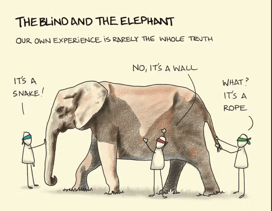 In essence, each individual finds themselves fixated on a particular spiritual experience, yearning for God to replicate it repeatedly instead of anticipating new and diverse encounters. Furthermore, in our pursuit, we often fail to perceive God as a whole but rather resemble the blind individuals who, by merely touching various parts of an elephant, attempted to visualize its complete form. Consequently, the one who felt the trunk compared the elephant to a lengthy python, while another who touched the ear perceived it akin to a large petal, and yet another who encountered the leg believed it to resemble the sturdy trunk of a tree. Regrettably, they failed to synthesize their respective insights to grasp the true image of the elephant.